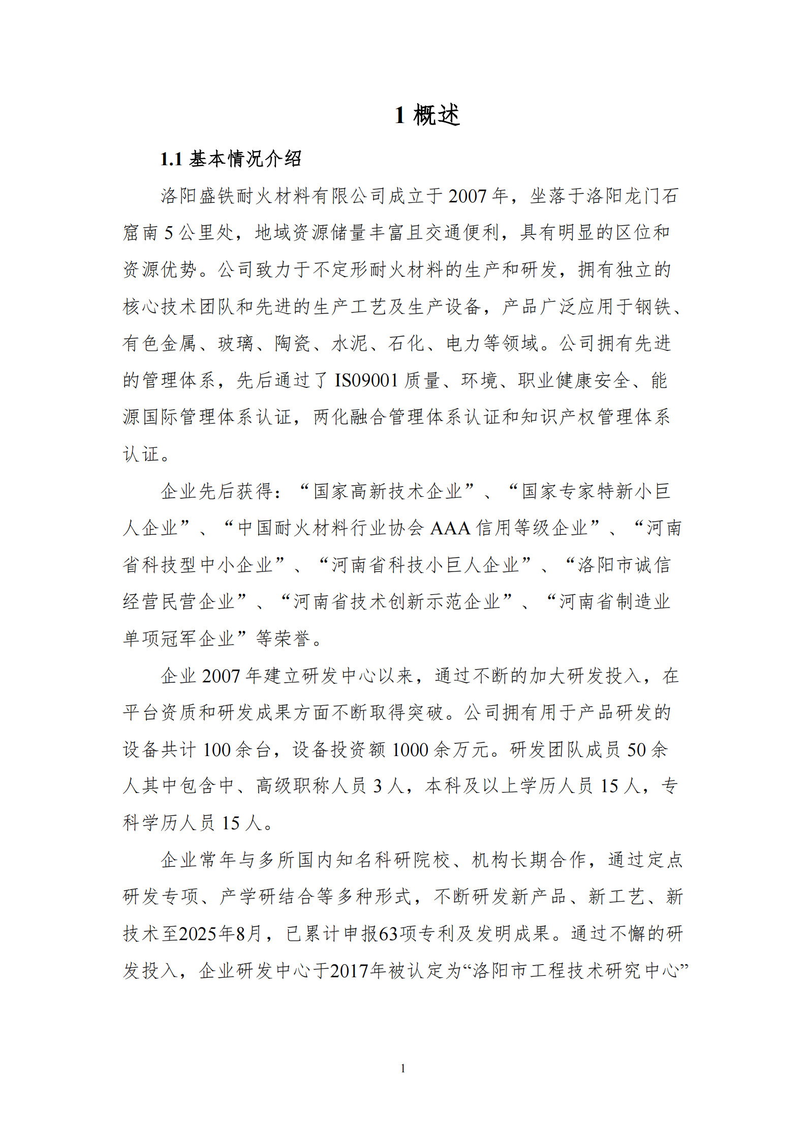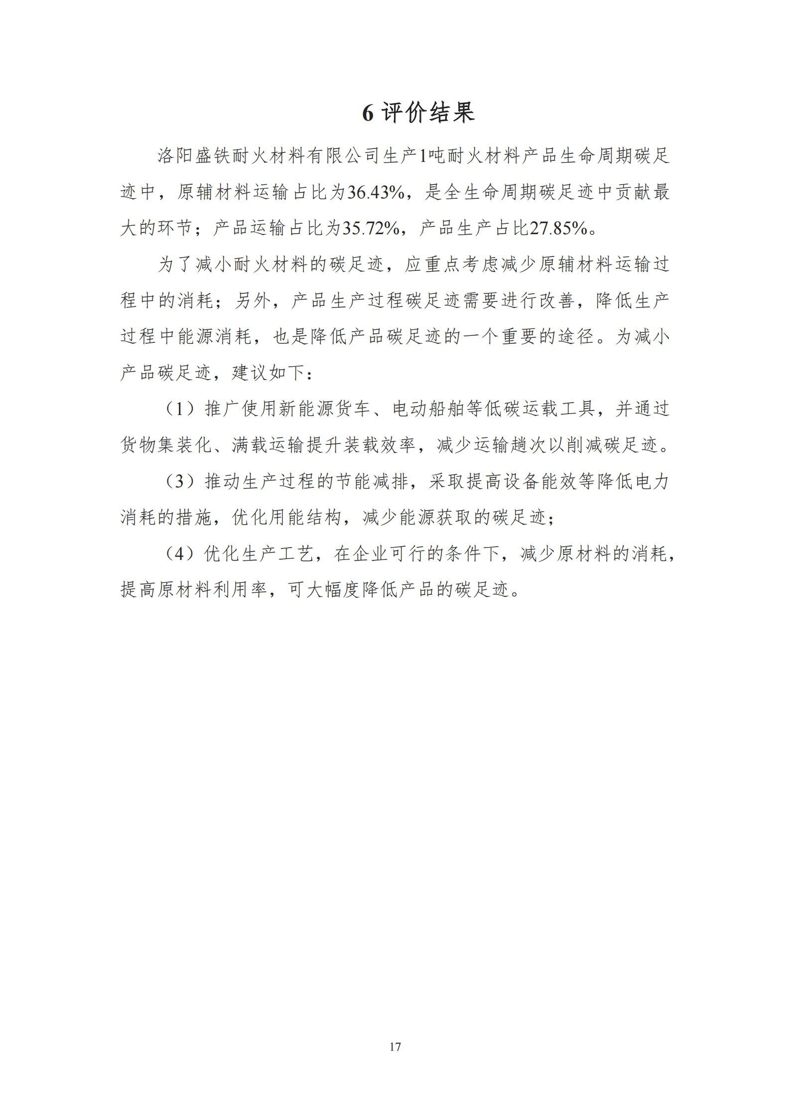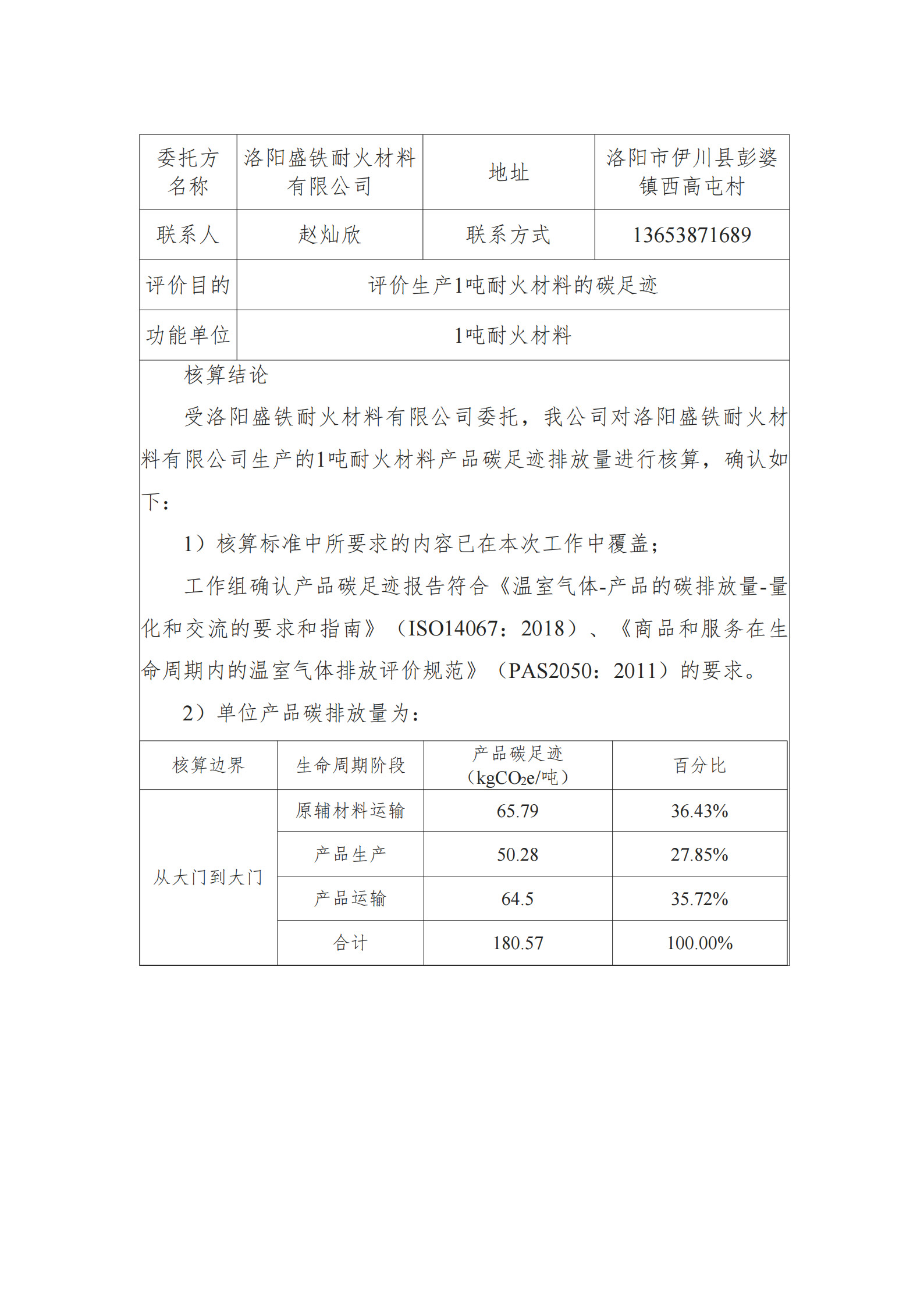 洛陽盛鐵耐火材料有限公司-產(chǎn)品碳足跡報(bào)告